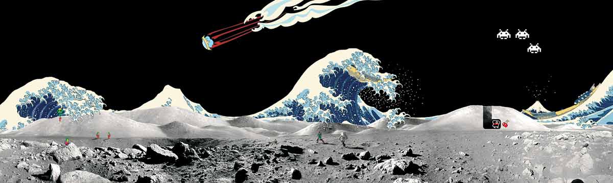 Bytes Degenerating. A jarring tension between ancient aesthetics and modern technology. The Koy Pond is tranquility while the image artefacts remind the viewer of the layer of technology tha