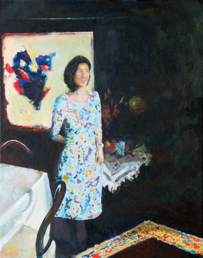 Portrait in the dining room. I let myself be influenced for this one, inspired by the Nabis, especially Édouard Vuillard. Am very tempted to have a tentacle creeping out from under the ta