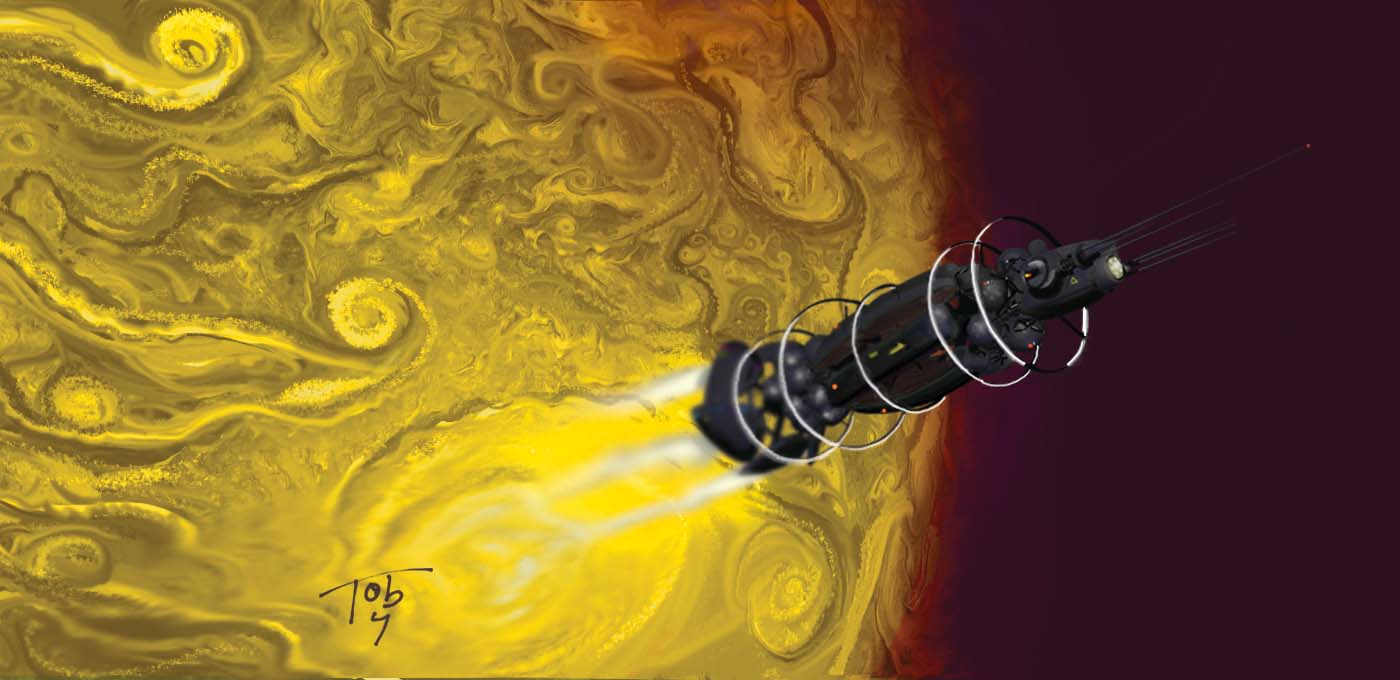 Sessrumnir (Klan Silicium Karavan Ship) running at full-burn. “By the time Sessrúmnir’s first burn was complete, Khawandagar, torn and twisted, still venting gasses, was two million