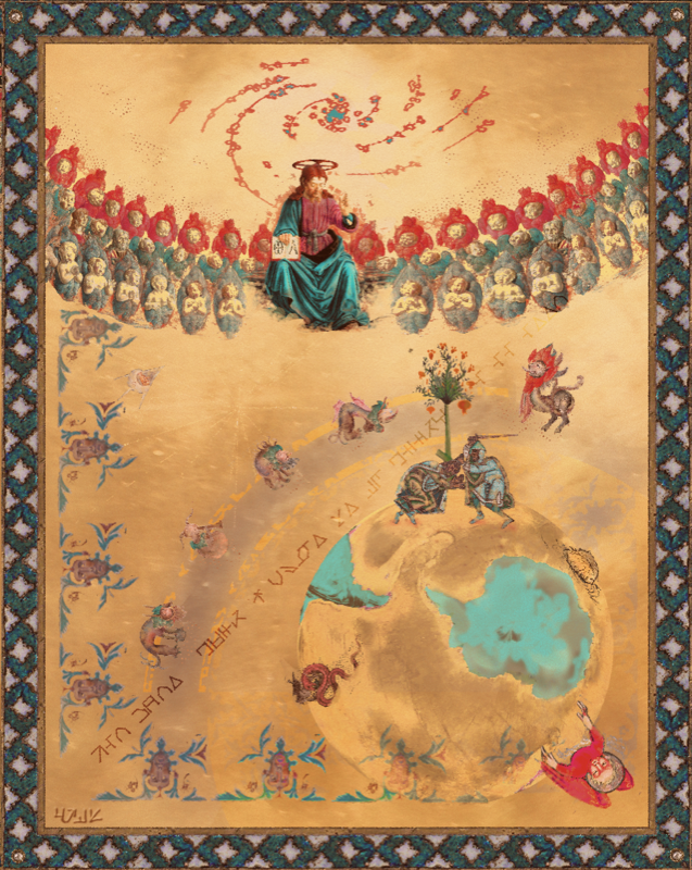Ancient proof of Alien visitation? At first this appears to be a Christian renaissance icon, “12th Century“. The Milky Way together with the globe viewed south pole, hint that there is more here.